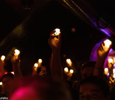 Espectadores, con las manos y las velas en alto durante "Todo se apaga"