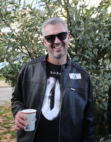 Jonatan escucha la música de un altavoz mientras sonríe en la vereda de la puerta del bar Metrópoli. Una camiseta con el nombre de Robe y una pegatina pintada a mano con la misma leyenda. Gafas de sol, chupa de cuero, vaso de cartón. Miles de personas, como Jonatan, han llegado de todas partes para el homenaje. De Cádiz, de Madrid, de Galicia, de Elche...