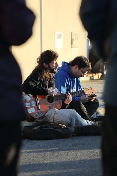 Chicos ambientando las calles acompañados de guitarra y palmas